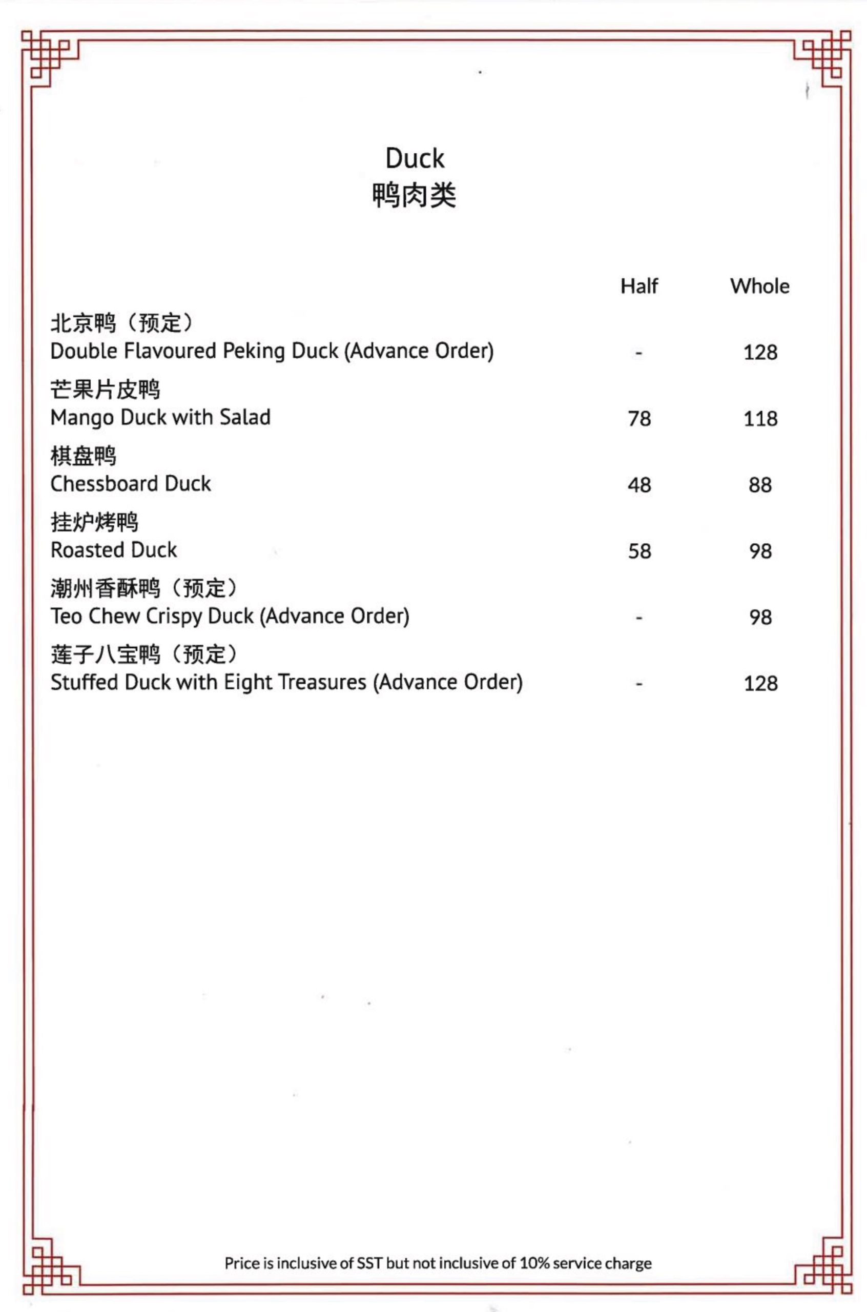 Our Menu